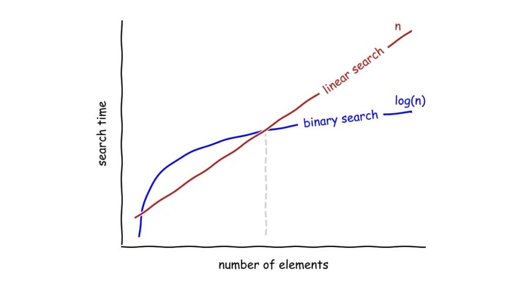 Grafikte görüldüğü gibi, n büyüdükçe ikili arama çok daha hızlıdır. Bilgisayar bilimi temellerinde, bu kavramlar (Big O notasyonu) ilerleyen derslerde derinleşecek.